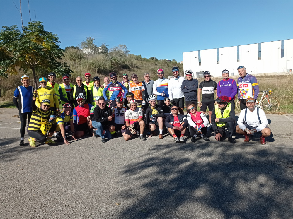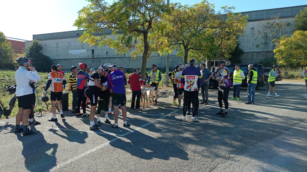 Foto de participantes a la salida Foto de familia despues del avituallamiento Participantes con el mallot histórico de la Unió Miembros de la organización y voluntarios Taller de la Bicicleta dando el servicio de asisténcia técnica Los Dalton no podian faltar a la cita Buen humor durante el recorrido Voluntarios activos de la organización El avituallamiento no podia faltar